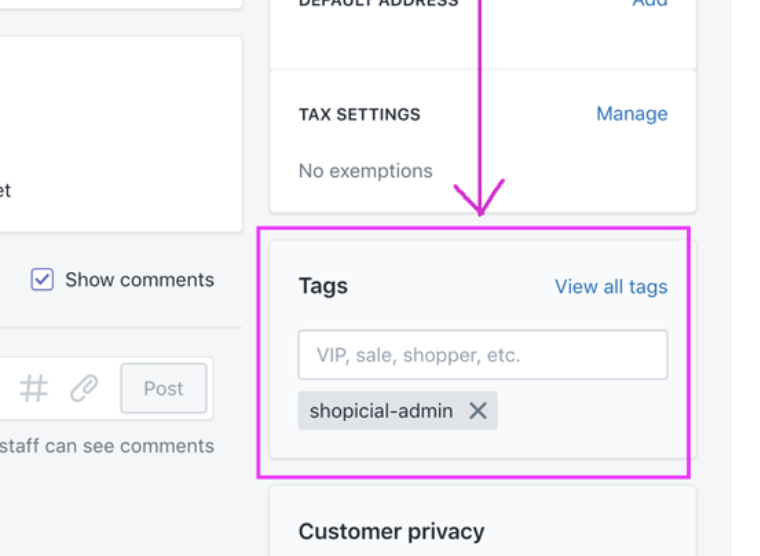 - c. Scroll to the bottom to find the Shopify customer ID section.